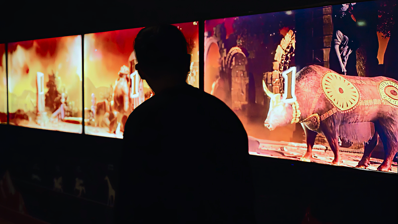 你能跑得比神獸還快嗎?在這個展區,我們邀請觀眾走上專屬跑道,與來自希臘神話的神獸——獅鷲、天蠍、牛與貓頭鷹——展開一場速度對決。當倒數計時響起,神獸動畫將在大型螢幕中奔馳,體驗者同步啟跑,透過紅外線感測技術紀錄速度與成績。終點畫面將顯示你與神獸的差距,讓「速度」這個抽象概念,化身成為一場熱血奔跑的具象體驗。